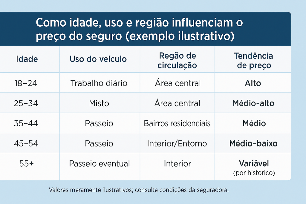 A seguradora avalia informações do condutor, uso do veículo, histórico de sinistros e região de circulação para calcular o risco e definir o valor.